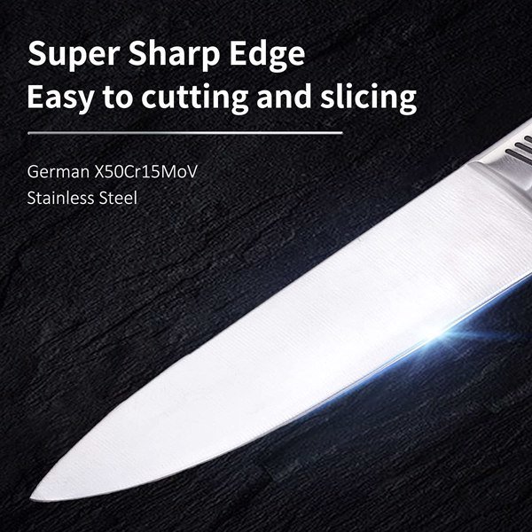 Ergonomic Hollow Handle Stainless Steel Hollow Handle with a full tang knife blade provides maximum comfort and stability while cutting, which can enjoy cooking more faster ans easier. Ergonomic handle is made of stainless steel which is comfortable for you use