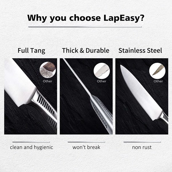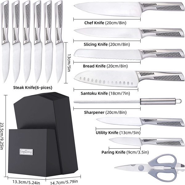 LapEasy knives block set contains all tools you need in kitchen cutting tasks,suitable for both professional and home use.