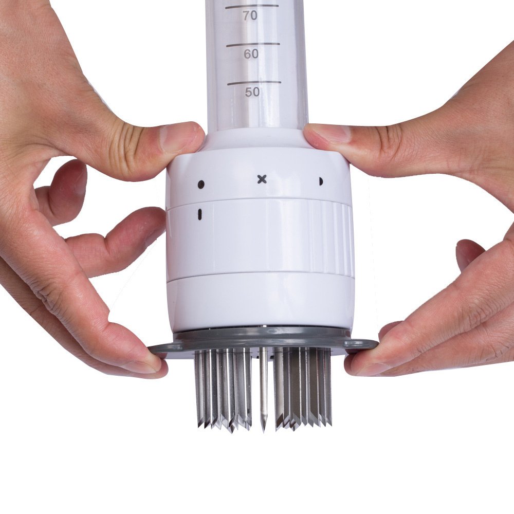 5.Multi-use - The Food Injector is perfect for almost any meats, such as beef, lamb chops, pork loin, chicken breast, turkey, fish, sauce enhancer, and so on. The meat tenderizer needle can break down the connective tissue of the meat, making the meat tender and easy to eat.