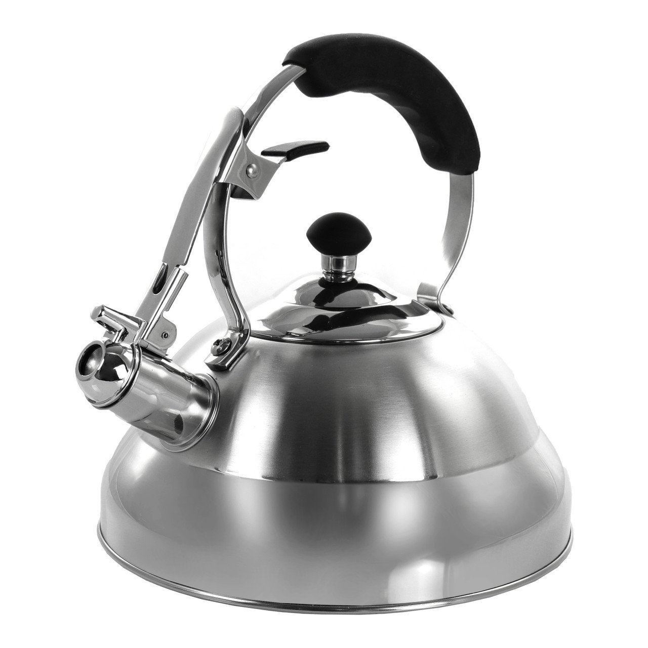Crafted with style and elegance, the MegaChef 2.7 Liter Stovetop Kettle with beautiful polished design in Silver is efficient in even heat transfer for faster boiling. Whistling tea kettle heats up 2.7 Liters of water at a time, ideal for large gatherings.